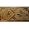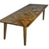 The top comprises of 132 individually cut and fitted wedges of solid mango, skilfully assembled into a unique top design every time.